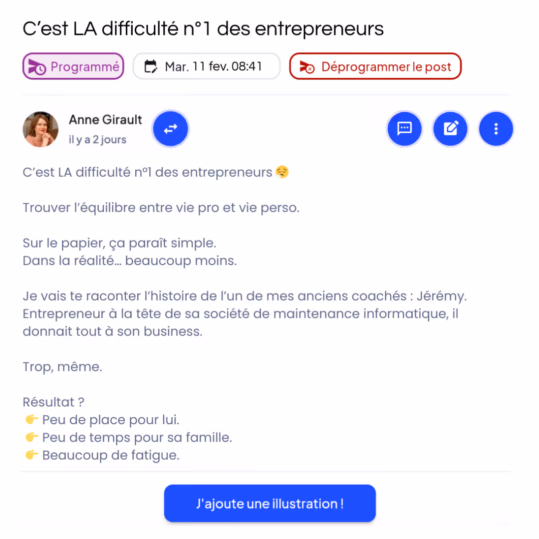 Maintenant, c'est fait en quelques minutes et des prospects me contactent grâce à mes posts.
