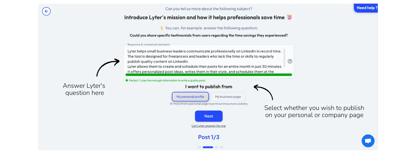 Publishing on LinkedIn cannot be improvised. That's where Lyter comes on the scene: he's not just helping you, he's (really) doing the job for you.