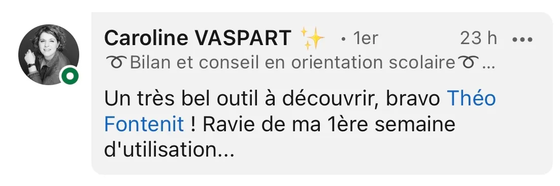Maintenant, c'est fait en quelques minutes et des prospects me contactent grâce à mes posts.