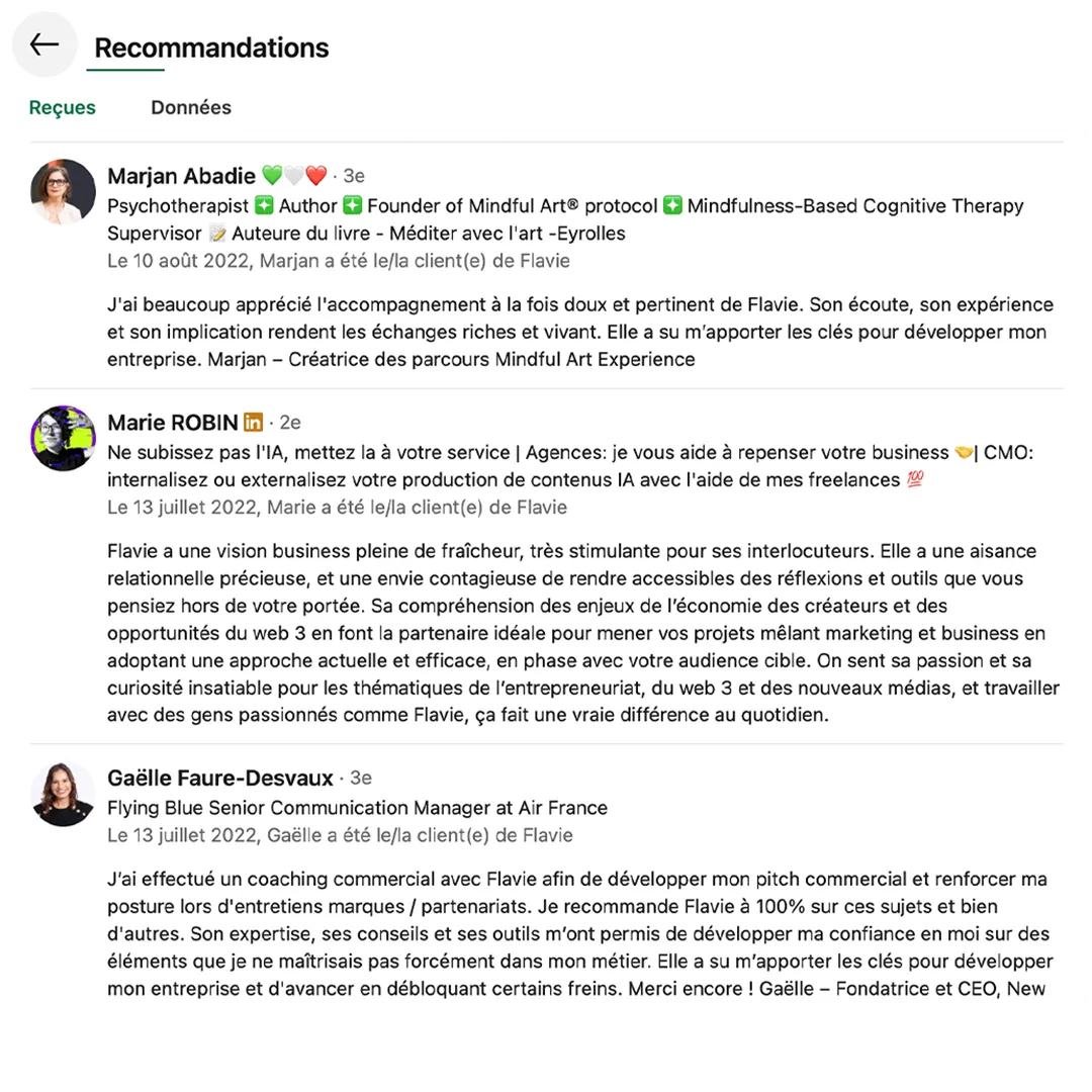 • Enfin, collectionnez les recommandations. Plus vous en avez, plus vous rassurez vos prospects.