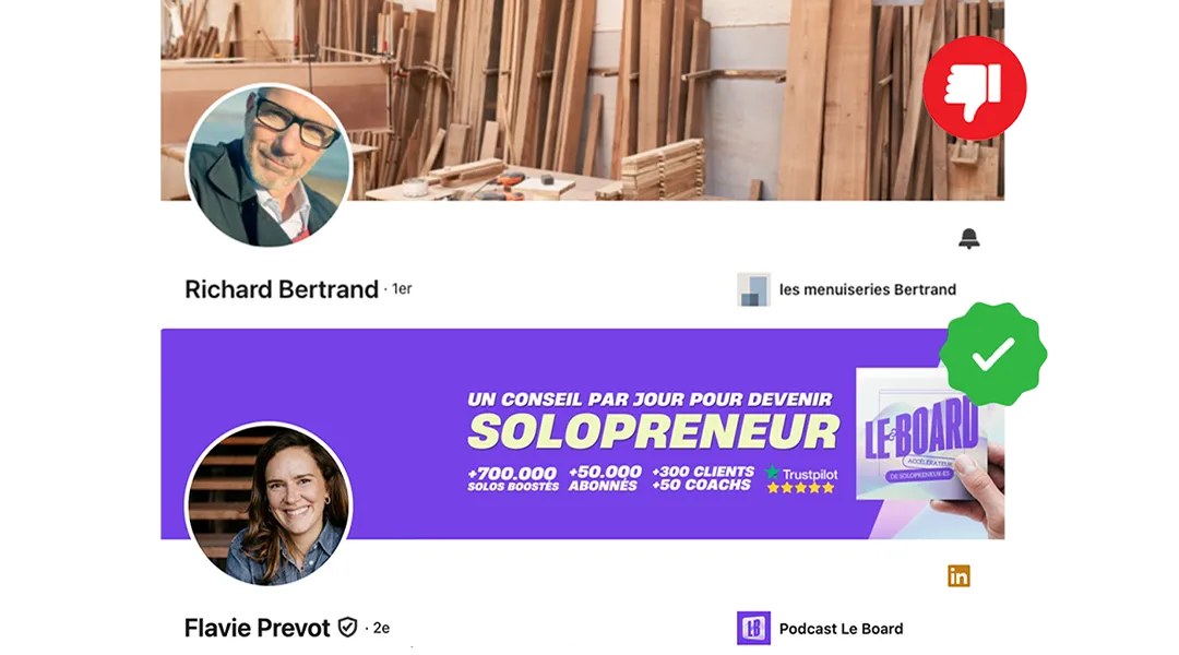 • Votre bannière raconte votre univers, votre personnalité. Évitez les images génériques, montrez votre créativité.